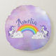 Regnbåge och enhörningar Design Rund Kudd med anpassningsbar personlig anpassning. För ingen text, ta bort provtexten och lämna tomt. Perfekt för ett litet flickrum!