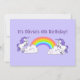 Regnbåge och Unicorns utformar en plan inbjudan med anpassade text och bakgrund färg.