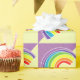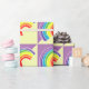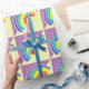 Rutnät för lila och gult med färgade regnbågar av roligt på inslagning som är pappra för dekorering och vid särskilda tillfällen.