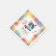 Födelsedagsfest för lackering och färgning av lacktemat papper napkin med regnbåge i färg med faux guld glitter runt med en söt bullhund av fransk med röd babyhatt och scarf, målande palett och målande pensel. Anpassa den här produkten genom att lägga till barnets namn, ålder och händelsemedatum i grund.