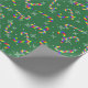 Denna papper för julomslagning har en polkagrisar för regnbåge. Det finns två olika polkagrisar med vriden regnbåge med snöflingor mot gröntens bakgrund. Du kan göra candy cane mönster större eller mindre på den här presentfigurationen. En roligt julklapp till din julhelg.
