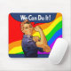 Den retro eraen Rosie för klassikern WWII riveteren "kan vi göra den" avbildar är en traditionell symbol för starka kvinnor. Hon visas här mot färgad bakgrund för vågigt regnbågen