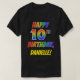Framsidan av denna pulserande, färgstarka och öga-matade skjorta har texten "LYCKLIG 10TH BIRTHDAY" med brev och siffror med en flerfärgad regnbågsinspirerad övertoning mönster och en gult för färgad av eget namn. En roligt, en lycklig-skjorta av det här slaget kan bäras av gästerna vid en födelsedagsfest som hålls i firande på någons tioårsdag. [~Z0000392]