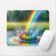 Kraftiga regnbågar ned till stänk ned i bassäng i vatten, skapande en färgfull sprängning när regndroppar sjunker runt