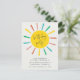En färgglad rolig barnkalasinbjudan med regnbåge sol och modernt skrivstil. Klicka på redigeringsknappen för att anpassa denna design med dina detaljer.