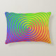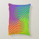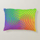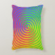 Här finns en färgstark accentkudde med en abstrakt spiral-regnbåge mönster som snurrar runt ett centralt mål i färg av grönt, blått, gult, orange och rött.