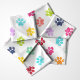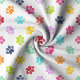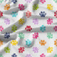 Förgylla dina projekt med detta glada Regnbåge Vattenfärg Tassavtryck Mönster Tyg. Med en lekfull rad av flerfärgade tassavtryck på en krispig vit bakgrund, är detta tyg perfekt för djurälskare och hantverkare. Idealiskt för att skapa unika husdjurstillbehör, heminredning eller anpassade presenter, ger denna livfulla design en touch av kul och nyckfullhet till alla projekt.