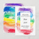 Vår moderna Regnbåge Vattenfärger-kollektion har vackra vattenfärgspenselmönster i regnbågstoner. Denna eleganta användning av regnbågstoner och vackra typsnitt kommer att överraska era gäster. Perfekt för par som är intresserade av mångfald, chakror och HBTQ-par. Fyll i er bröllopslook med vår inbjudan, magband, mottagning, svar, tackkort och gummistämpel.