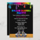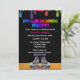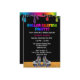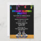 Den roliga och livliga födelsedagsfestdesignen för barnsärdrag målar droppandear i neonregnbågefärger drypande uppifrån. Nedanfört målar regnbågen droppandear är text som något att sägarullen som åker skridskor partyet! i neonregnbåge färgad stilsort. Nedanfört är denna anpassadetext i vit- och shock rosastilsort. Längst ner av inbjudan är en para av purpurfärgad rullskridskor med en regnbåge på varje. Rullskridskor sitter på ett ädelträ som åker skridskor isbanagolv. Bakgrunden av designen är svart danande popet för neonregnbågefärger egentligen! den omvända sidan är svarten och har den samma regnbågen att måla droppandear på det bästa. Denna är den perfekta rullen som åker skridskor födelsedagsfest inbjudanför barn!