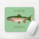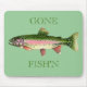VADDERAR MUSEN " FÖR BORTA FISH'N" MED EN REGNBÅGEFORELL. FÄRGPENNATECKNING AV LARRY SIMONS.