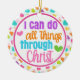 Tillfoga ett speciellt handlag till ditt helgdagträd eller ansvar med denna keramiska prydnad för den kristna scripturen. Presenterar ordstävet "som jag kan göra alla saker till och med Kristus", Philippians4:13, och betonat med färgrika regnbågehjärtor. En utmärkt religiös gåva för vuxen och barn.