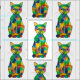 En målning av en regnbågekatt. Katten har ett pälsmönster att gilla en tortie, endast i ett lott som mer färgar.