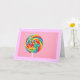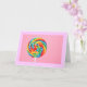 Ett gulligt som skjutas av en regnbågeklubba på en rosa bakgrund.