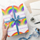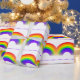 Färgrikt slående in papper som presenterar ett färgrikt regnbågemönster. Denna regnbåge som slår in papper, är perfekt för födelsedaggåvor. helgdaggåvor och mer.