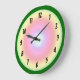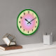 Denna dekorativa vägg tar tid på särdrag en älskvärd lysande cirkulärdesign i pastellfärgade regnbågefärger av grönt, gult, rosor, blått och vit. Numrerar kan göras klar, om en enklare design föredras.