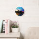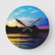 Regnbågesolnedgång på bergsjön rund klocka