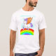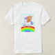 Vitunicorn med purpurfärgad mane- och svanlandning på en regnbåge i molnen. Flickat-skjorta design.