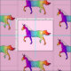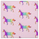 Ett tyg med ett unicorntema. En unicorn i regnbågefärger.