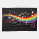 Regnbågevitmusik noter på svart kökshandduk