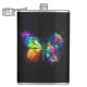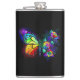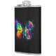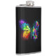 Regnbåge, luminös, artificiellt målad monarch butterfly med bukett av iridescent, starkt, luminiscent ro mot svart bakgrund. Regnbågfjäril.