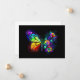 Regnbåge, luminös, artificiellt målad monarch butterfly med bukett av iridescent, starkt, luminiscent ro mot svart bakgrund. Regnbågfjäril.