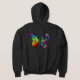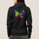 Regnbåge, luminös, artificiellt målad monarch butterfly med bukett av iridescent, starkt, luminiscent ro mot svart bakgrund. Regnbågfjäril.