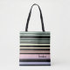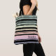 Rand vågrät oregelbunden blandning av svart och tonad regnbåge i vitt och tunt rand i stil i pastellblått, rosa, orange, gult och rand. Anpassa med ditt namn eller initialer i en svart teckentext på den här strimlade väskan.