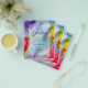 Regnbågsfärgat bläck ombre tema bröllopsdetalj.