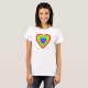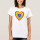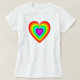 Ljus levande multi-färgad t-shirt med regnbågsälskande hjärtdesign – med ljusa rosa, lila, blå, gröna, gula, orange och röda färger