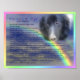 Till minne av en kär vän och följeslagare, dikten om regnbågsbron, med en bild av en svart border collie hund som tittar ner genom molnen. För fler blommiga, djur och natur posters och tryck, besök min postersgalleri SmilinEyes_Posters. Den här bilden finns tillgänglig på många kort och produkter i min huvudsakliga butik Smilin' Eyes Treasures.