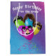 Regnbågsbukett med ögonbollar och glas på regnbågsbakgrunden för födelsedag från gruppen. Text kan ändras.