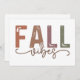 Den här mysiga och inbjudande höstdesignen presenterar frasen "Fall Vibes" i en kombination av fet och elegant typografi. Ordet "FALL" visas i stora, kantiga bokstäver med en slitna textur, vilket ger det en rustik, vintage-känsla. Varje bokstav är fylld med en varm, jordnära färg - nyanser av dämpad orange, brun, lila och grön - som perfekt fångar essensen av hösten. Under ordet "FALL" skrivs ordet "vibes" i en delikat, flytande skrivstil, vilket ger designen en touch av elegans och charm. Kontrasten mellan de feta blockbokstäverna och den mjuka skrivstilen skapar en balanserad och visuellt tilltalande komposition, vilket gör denna design perfekt för hösten.