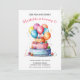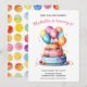 Regnbågsfärgad akvarelltårta & ballonger Flickors Inbjudningar
