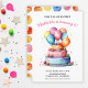 Fira en speciell dag med denna Födelsedagsinbjudan för flickor med regnbågskakel och ballonger, med en glad handmålad design på framsidan och ett lekfullt prickmönster på baksidan.