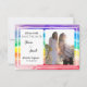 Dela ditt vackra förlovningsfoto på detta Rainbow Watercolor Save the Date. Vår moderna Rainbow Watercolors kollektion har vackra vattenfärgspenselmönster i regnbågstoner. Denna eleganta användning av regnbågstoner och vackra typsnitt kommer att överraska dina gäster. Perfekt för par som är intresserade av mångfald, chakran och HBTQ-par. Fyll ut din bröllopslook med vår inbjudan, magband, mottagning, svar, tack-kort och gummistämpel.