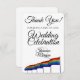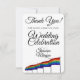 Tacka era bröllopsgäster för gåvor, kort eller helt enkelt för att vara en del av er speciella bröllopsdag. Dessa kort har texten "Tack för att du var en del av vår bröllopsfirande". De har en plats för att skriva namnet på paret och en bild av en rad regnbågsfärgade gay pride-flaggor. Baksidan är medvetet tom så att du kan skriva ett personligt meddelande. Ett bra sätt att säga tack efter er speciella dag.