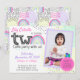 Regnbågsflickans 2-årsdag Kawaii-klotter Foto Inbjudningar
