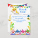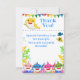 Firar din lilla hajfödelsedag! Innehåller en vit bakgrund med blått skrivbord och regnbåge av färgad. Alla formuleringar kan anpassas på tackkortet. Bubblor, fiskar och koraller lägger till roligt lite detaljer i inbjudan. Underbar för party eller party under havet. Grafik av Mujka.