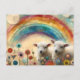 Ett par lamm i en vildblomma fält under en regnbågsfantasi genererade konst