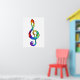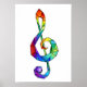 Polygonal, regnbåge, ljusa musikaliska nyckel på vit bakgrund. Polygontatuering. Treble clef