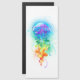 Stora, irrande, konstnärligt ritade, ljusa maneter med långa tentakler på vitt, målade över med flerfärgad vattenfärgad bakgrund. Regnbågsnäcka.