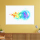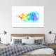 Stora, irrande, konstnärligt ritade, ljusa maneter med långa tentakler på vitt, målade över med flerfärgad vattenfärgad bakgrund. Regnbågsnäcka.