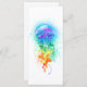 Stora, irrande, konstnärligt ritade, ljusa maneter med långa tentakler på vitt, målade över med flerfärgad vattenfärgad bakgrund. Regnbågsnäcka.