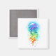 Stora, irrande, konstnärligt ritade, ljusa maneter med långa tentakler på vitt, målade över med flerfärgad vattenfärgad bakgrund. Regnbågsnäcka.