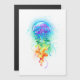 Stora, irrande, konstnärligt ritade, ljusa maneter med långa tentakler på vitt, målade över med flerfärgad vattenfärgad bakgrund. Regnbågsnäcka.