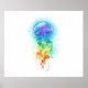 Stora, irrande, konstnärligt ritade, ljusa maneter med långa tentakler på vitt, målade över med flerfärgad vattenfärgad bakgrund. Regnbågsnäcka.