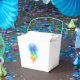 Stora, irrande, konstnärligt ritade, ljusa maneter med långa tentakler på vitt, målade över med flerfärgad vattenfärgad bakgrund. Regnbågsnäcka.