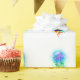 Stora, irrande, konstnärligt ritade, ljusa maneter med långa tentakler på vitt, målade över med flerfärgad vattenfärgad bakgrund. Regnbågsnäcka.