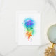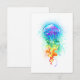 Stora, irrande, konstnärligt ritade, ljusa maneter med långa tentakler på vitt, målade över med flerfärgad vattenfärgad bakgrund. Regnbågsnäcka.