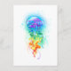 Stora, irrande, konstnärligt ritade, ljusa maneter med långa tentakler på vitt, målade över med flerfärgad vattenfärgad bakgrund. Regnbågsnäcka.